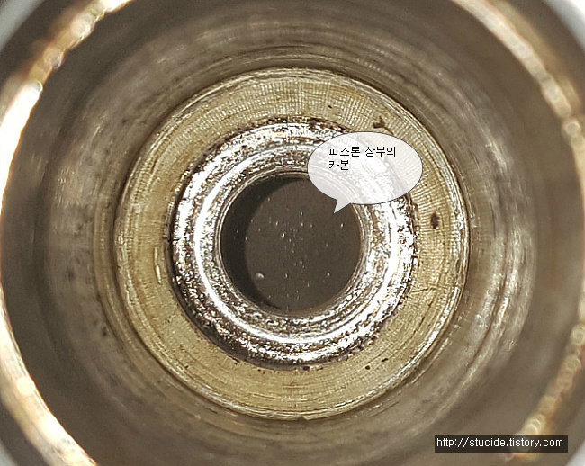 그때 피스톤 상단에 두껍게 쌓인 카본을 어렴풋이 볼 수 있었다.